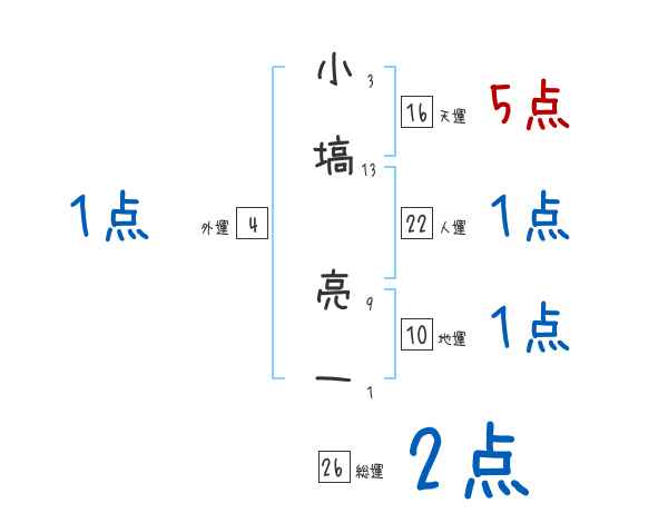 天運![]() | 小塙亮一さんの天運は16画の5つ星!人望が厚く大きく発展する。逆転成功が見える。 家系が持つ宿命的な運勢を表します。祖先から受け継いだ苗字ですので自分の力が及びません。家柄を象徴します。 |