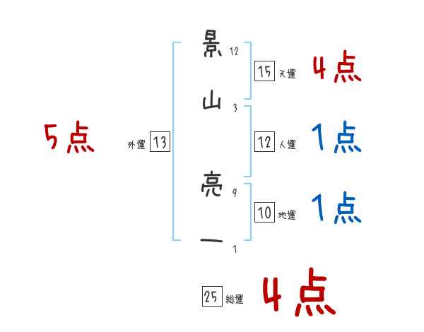 景山亮一さんの画数の鑑定結果