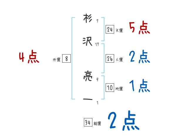杉沢亮一さんの画数の鑑定結果