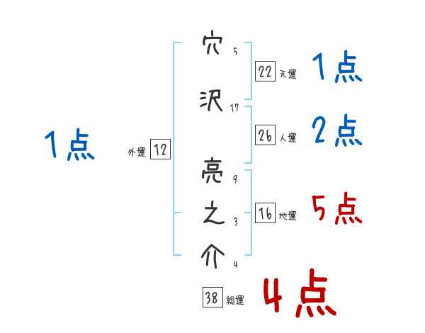 穴沢亮之介さんの画数の鑑定結果