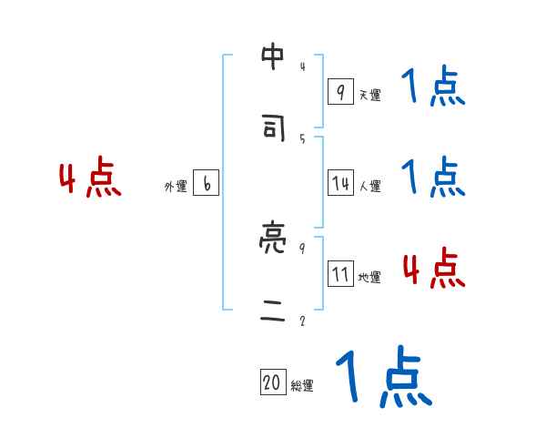 中司亮二さんの画数の鑑定結果