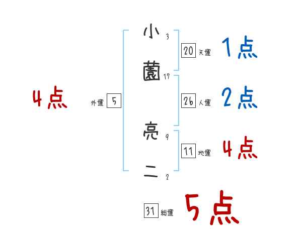 小薗亮二さんの画数の鑑定結果