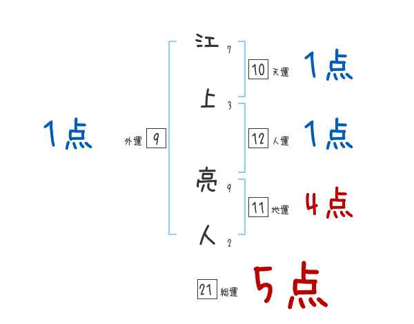江上亮人さんの画数の鑑定結果