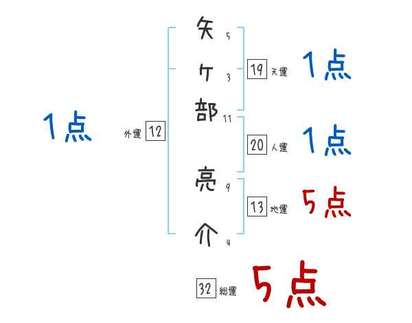 総運![]() | 矢ヶ部亮介さんの総運は32画の5つ星!柔軟性があり成功する。チャンスが多く金運が良い。 あなたの人生を表す1番重要な運勢です。生涯を通じて影響する総合運となり、主に50歳以降の晩年期に影響を及ぼします。 |