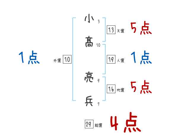 小髙亮兵さんの画数の鑑定結果
