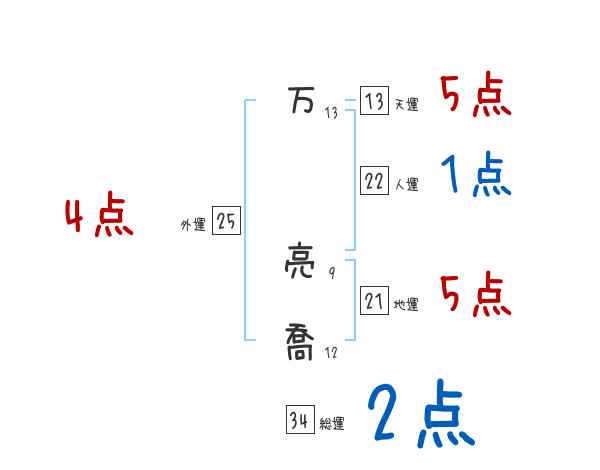 万亮喬さんの画数の鑑定結果