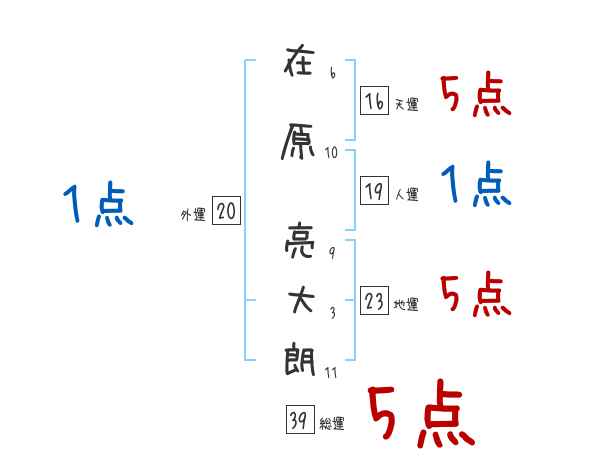 地運![]() | 在原亮大朗さんの地運は23画の5つ星!想像力に優れ活力がある。一代で成功し名誉を手に入れる。 個性を表す基礎的な運勢です。性格形成や対人関係、行動力など家庭環境に影響されます。主に誕生してから20歳くらいまでの若年期の運勢を表します。 |