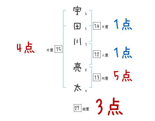 宇田川亮太さんの画数の鑑定結果