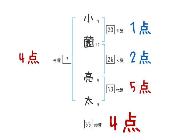 小薗亮太さんの画数の鑑定結果