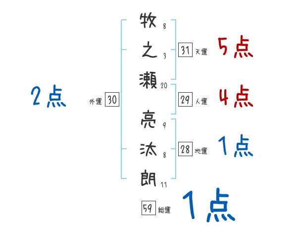 牧之瀬亮汰朗さんの画数の鑑定結果