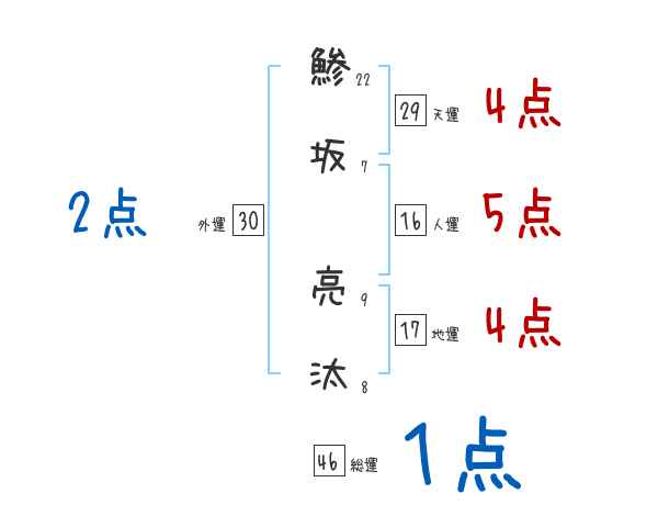 鯵坂亮汰さんの画数の鑑定結果