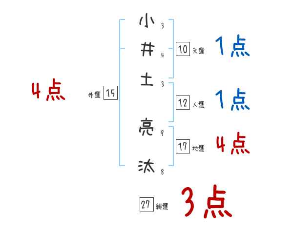 小井土亮汰さんの画数の鑑定結果