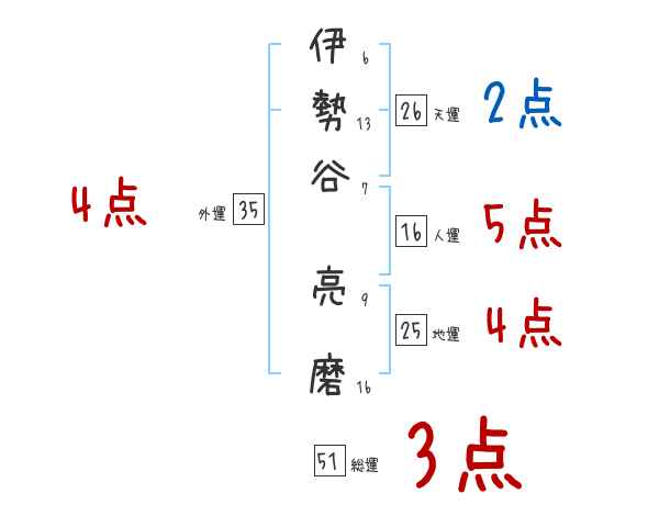 伊勢谷亮磨さんの画数の鑑定結果