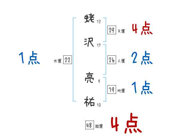 蛯沢亮祐さんの画数の鑑定結果