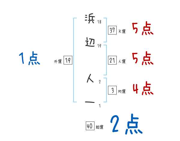 浜辺人一さんの画数の鑑定結果