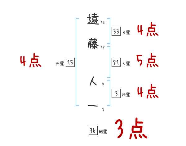 遠藤人一さんの画数の鑑定結果