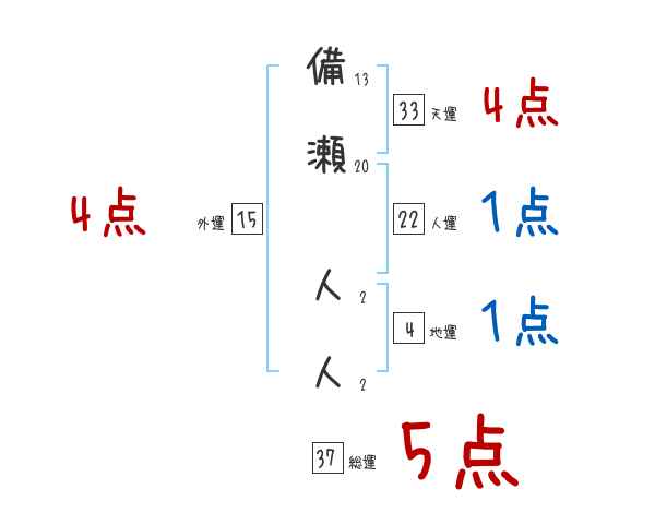 備瀬人人さんの画数の鑑定結果