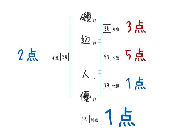 磯辺人優さんの画数の鑑定結果