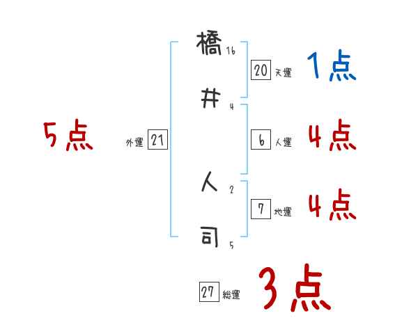 橋井人司さんの画数の鑑定結果