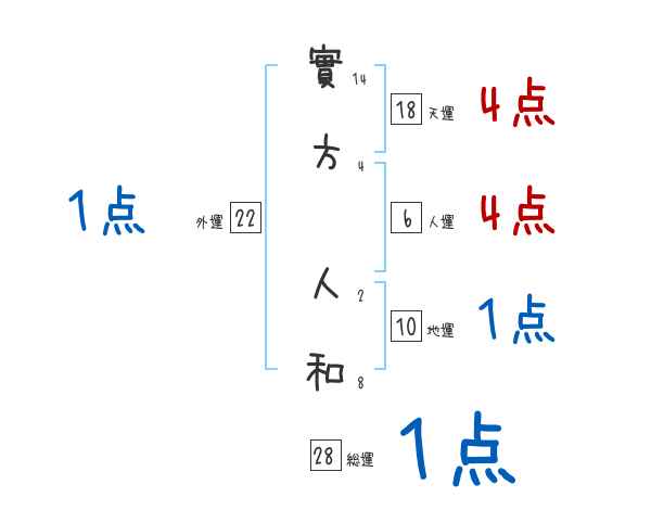 實方人和さんの画数の鑑定結果