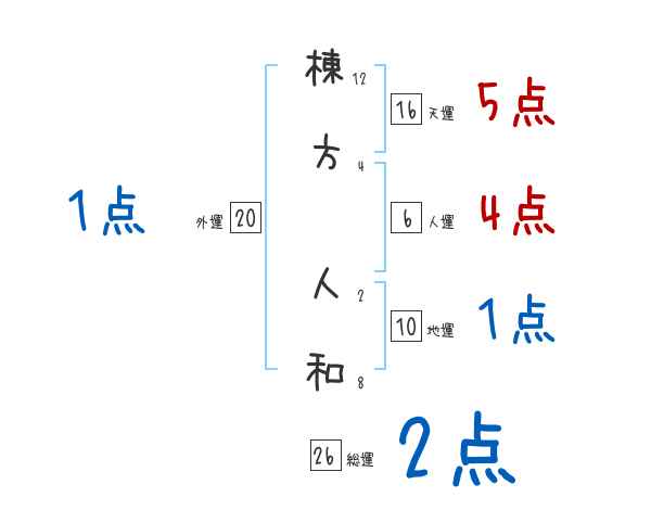 棟方人和さんの画数の鑑定結果