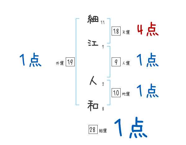 総運![]() | 細江人和さんの総運は28画の1つ星!家庭環境に注意。スポーツで活躍できる能力があるかも。 あなたの人生を表す1番重要な運勢です。生涯を通じて影響する総合運となり、主に50歳以降の晩年期に影響を及ぼします。 |