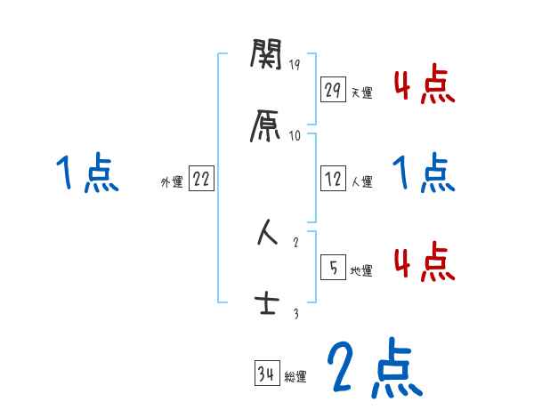 関原人士さんの画数の鑑定結果