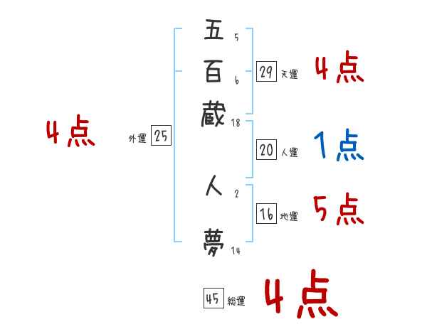 五百蔵人夢さんの画数の鑑定結果