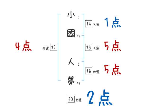 小國人夢さんの画数の鑑定結果
