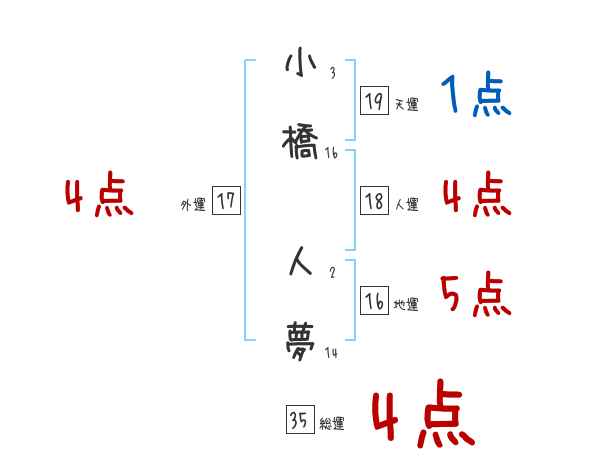 小橋人夢さんの画数の鑑定結果