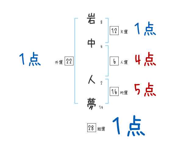 岩中人夢さんの画数の鑑定結果