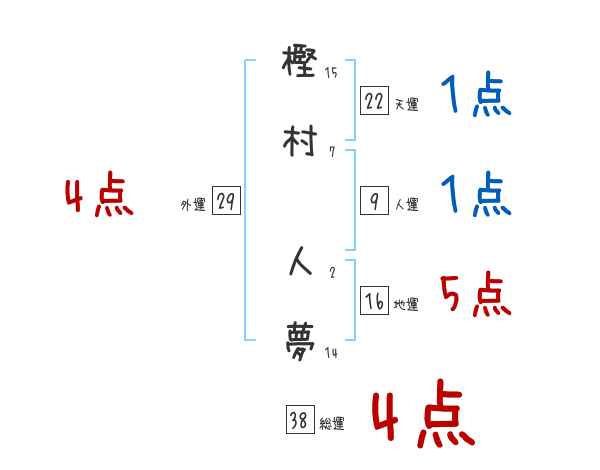 樫村人夢さんの画数の鑑定結果