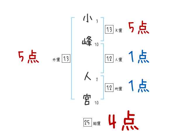 小峰人宮さんの画数の鑑定結果