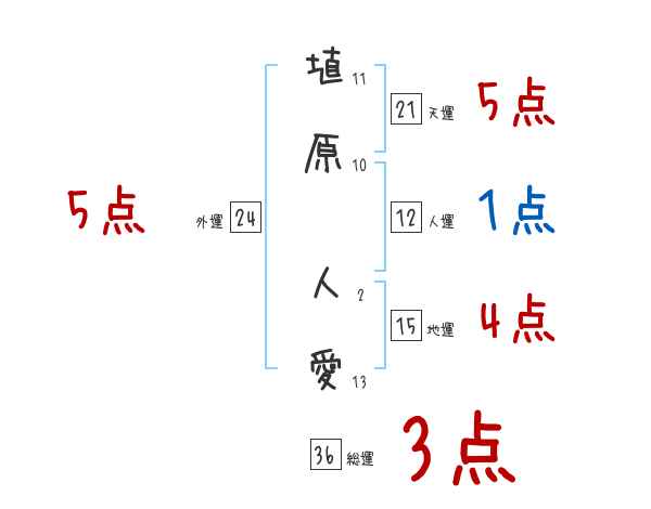 埴原人愛さんの画数の鑑定結果