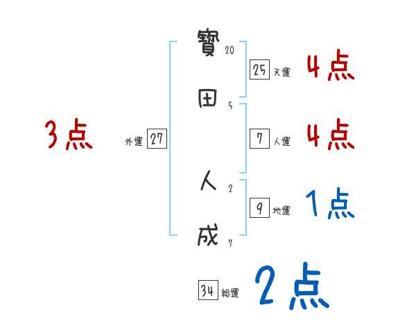 寳田人成さんの画数の鑑定結果