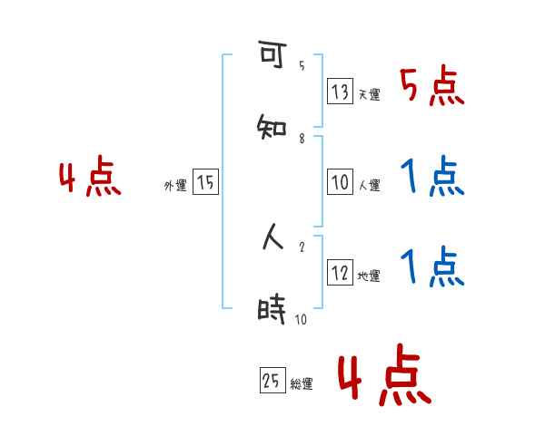 外運![]() | 可知人時さんの外運は15画の4つ星!人徳があり出世する。順調に物事を進め円満な人生。 生活面を象徴する運勢です。外部から受ける影響力を表し、結婚運、家庭運や職場、環境への順応性を表します。 |