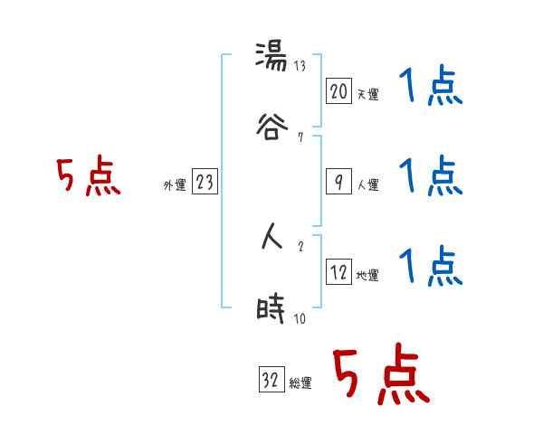 湯谷人時さんの画数の鑑定結果