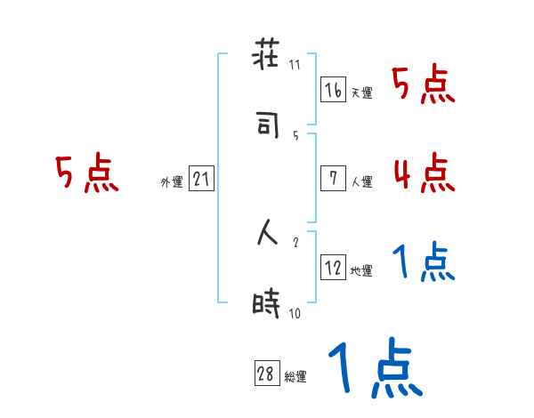 荘司人時さんの画数の鑑定結果