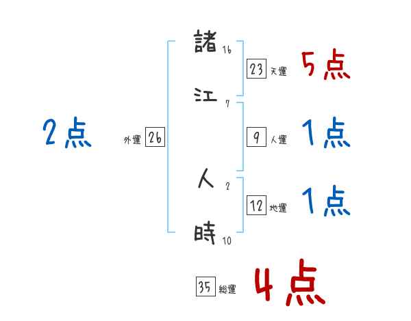 諸江人時さんの画数の鑑定結果