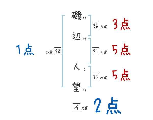 磯辺人望さんの画数の鑑定結果