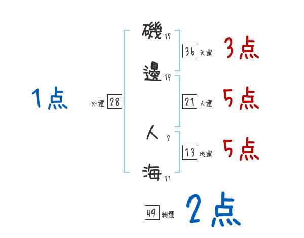 磯邊人海さんの画数の鑑定結果