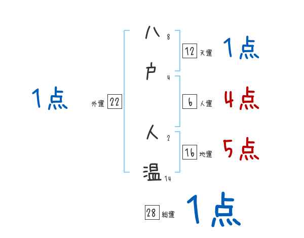 八戸人温さんの画数の鑑定結果