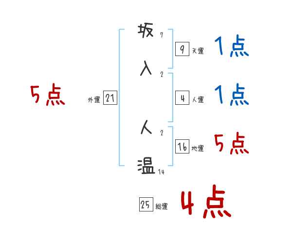 坂入人温さんの画数の鑑定結果
