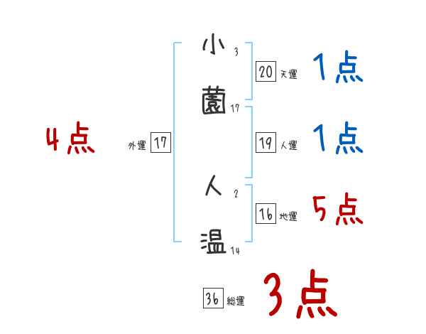 小薗人温さんの画数の鑑定結果