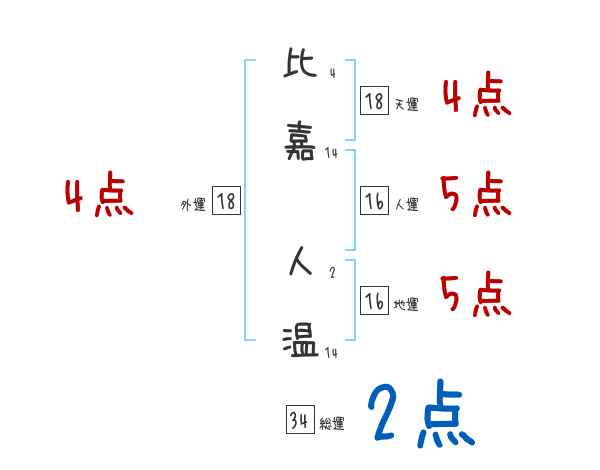 比嘉人温さんの画数の鑑定結果
