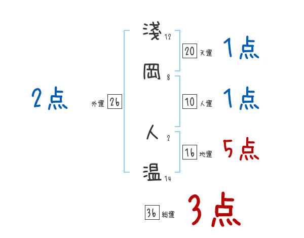 総運![]() | 淺岡人温さんの総運は36画の3つ星!先見性が豊かです。多少神経質で苦労することも。 あなたの人生を表す1番重要な運勢です。生涯を通じて影響する総合運となり、主に50歳以降の晩年期に影響を及ぼします。 |