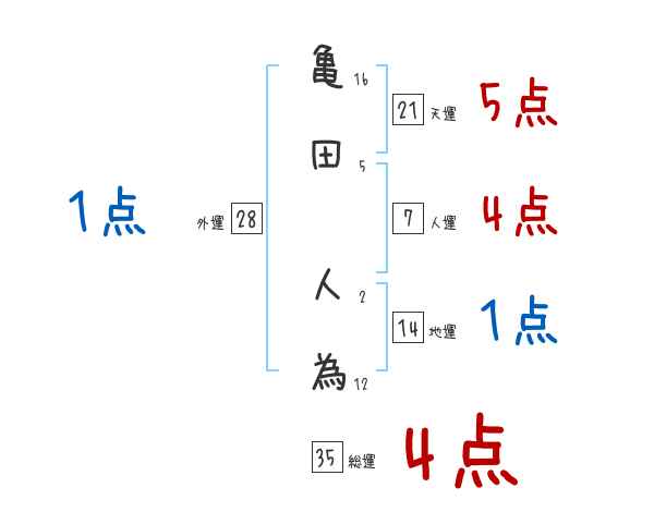 総運![]() | 亀田人為さんの総運は35画の4つ星!温厚な性格で感受性が高い。穏和な性格で人望が厚い。 あなたの人生を表す1番重要な運勢です。生涯を通じて影響する総合運となり、主に50歳以降の晩年期に影響を及ぼします。 |