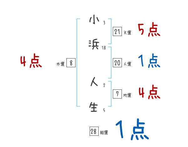 小浜人生さんの画数の鑑定結果