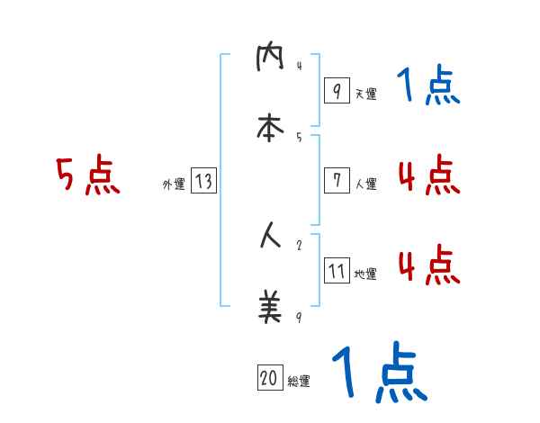 内本人美さんの画数の鑑定結果