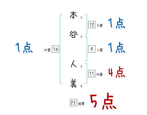 総運![]() | 本谷人美さんの総運は23画の5つ星!想像力に優れ活力がある。一代で成功し名誉を手に入れる。 あなたの人生を表す1番重要な運勢です。生涯を通じて影響する総合運となり、主に50歳以降の晩年期に影響を及ぼします。 |